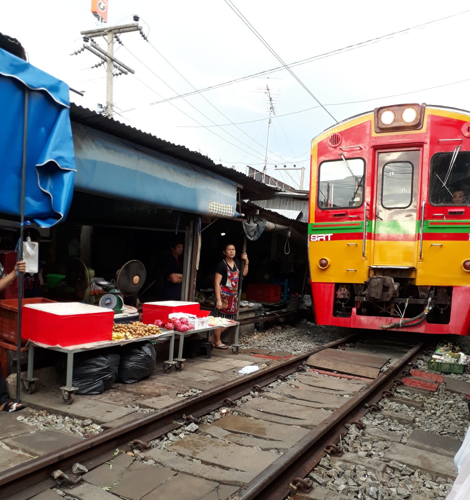 Byłam tam już dwa razy, ale za każdym razem zachwycił mnie tak samo! Wyobraź sobie tajskie targowisko. Soczyste owoce, suszone ryby, półżywe krewetki, egzotyczne przyprawy i kolorowe warzywa. Wszystko poukładane pod parasolami na koszach, pudłach, dziwnych konstrukcjach. A wszystkie stoiska ciągną się wzdłuż torów! Tak, dokładnie tak! Przez ten targ przejeżdża najprawdziwszy pociąg! I robi się naprawdę ciasno. W sekundę wszystkie stoiska składają się, wszyscy wstrzymują oddech, a jak tylko pociąg minie stanowisko, to zostaje ponownie błyskawicznie rozłożone. Mega przeżycie! Do miasteczka dostaniesz się z południowego dworca Sai Tai Mai. Tuż obok jest kilka pływających targowisk. Warto zaznaczy to miejsce na swojej mapie podróży. Pod tym linkiem znajdziecie na myGecko film na żywo, który nagraliśmy z Emilem z przejazdu pociągu – Maeklong Train Market.