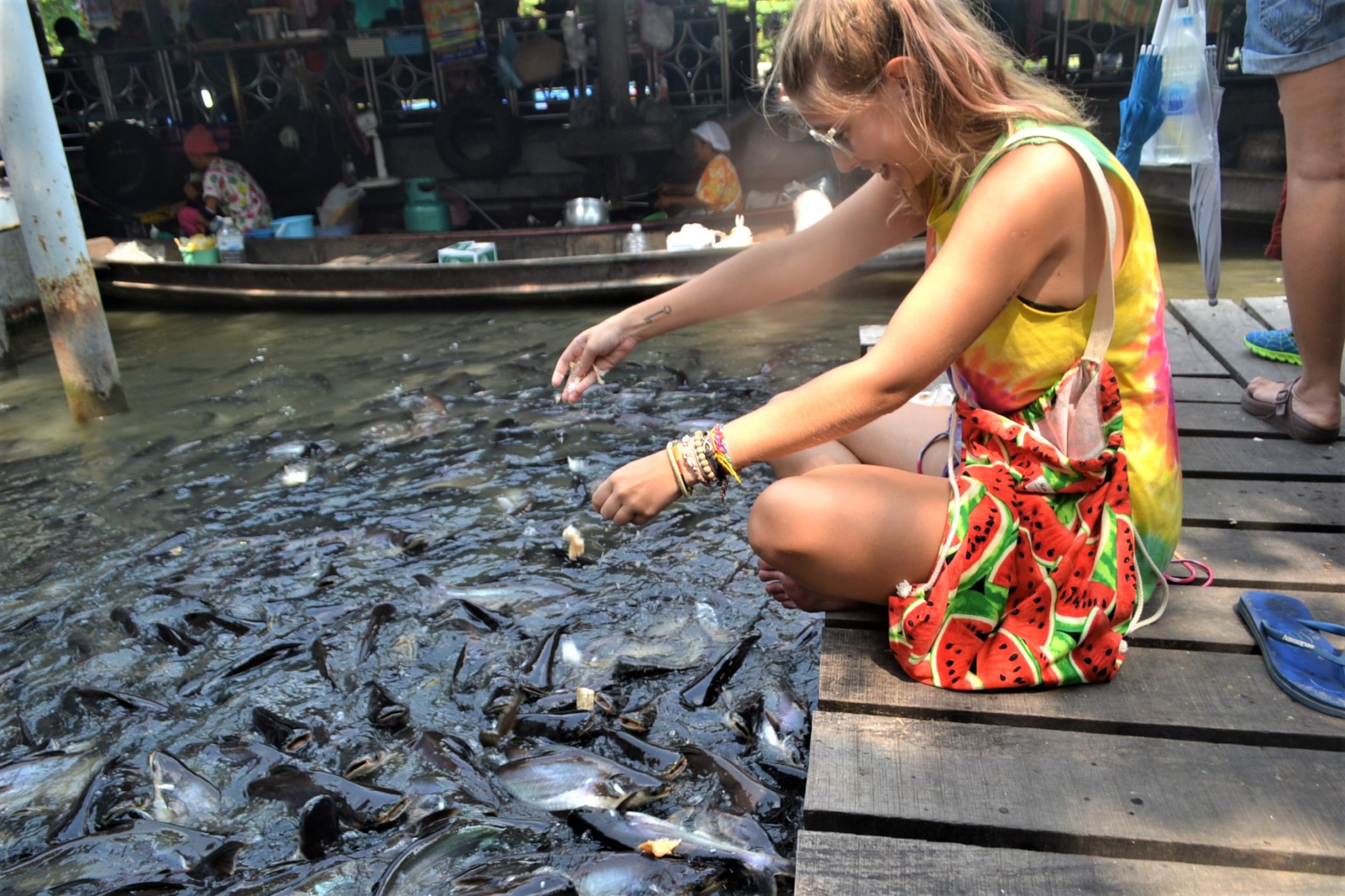 Lokalny pływający market w Bangkoku. Nie znajdziesz tam tabunów białasów, kosmicznych cen za łódki oraz stoisk sklepikarzy dostosowanych do wyobrażeń turysty o egzotycznej Azji. Mały i bez fajerwerków. Ale autentyczny. Pokarmisz chlebem stada ogromnych, rzecznych ryb. Zjesz świeży seafood z drewnianej łódeczki od uśmiechniętej baby. Przepłyniesz się po kanałach z tajskim przewodnikiem (za jedyne 40 thb!). Gorąco polecam!