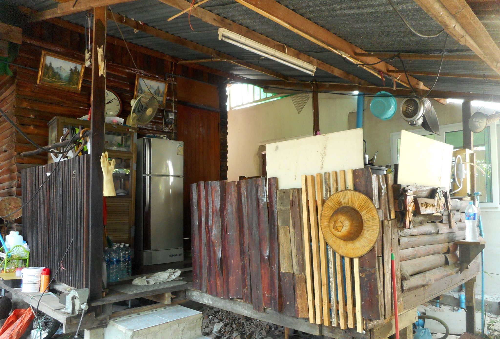 Jego dom stał ścianę ścianę z naszym. Wyobraź sobie typowy tajski dom. Drewniany z blaszanym dachem na krótkich palach. Kable wiją się na zewnątrz, wokół sterczą plastikowe, niebieskie rury. Dom posklecanym dziwacznych materiałów – starych płócien reklamowych, metalowych blach, kolorowych folii ogrodniczych. Na zewnątrz otwarta kuchnia na ganku. Zlew, lodówka, goła żarówka na białym kablu, kilka woków, zielona z butla z gazem pod blatem zbitym z surowych desek. Na półkach poupychane dziwaczne przedmioty, niby zapominane, niepotrzebne, zakurzone, które nadal mają duszę i kiedyś mogą się przydać. Ostrzałka do noża w siatce z 7eleven sprzed dwudziestu lat. Zdezelowany, zardzewiały wiatrak, który działa, gdy kabel jest wykręcony pod dobrym kątem. Pod sufitem wisi kilka klatek dla ptaków, kolorowe lampki, plastikowe dziurawe sitka. Pod domem stoi metalowy wózek na którym wozi się zakupy z głównej drogi uważnie prowadząc urządzenie po wąskiej betonowej dróżce wzdłuż kanału. Znajdzie się też tasak do mięsa lub obcinania zeschniętych liści bananowca. Przy schodach wisi słomkowy kapelusz. Jest swojsko.