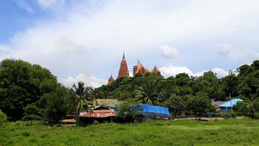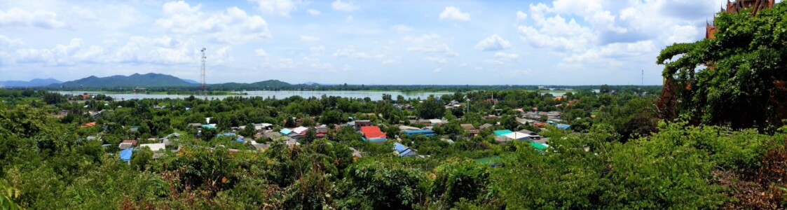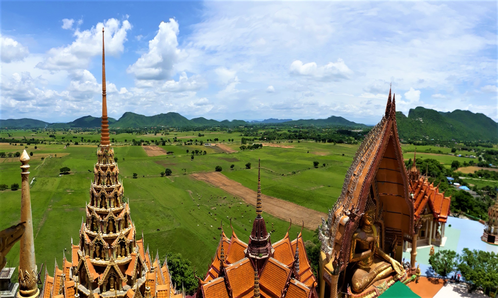 To moje ulubione miejsce w Kanchanaburi! Zakochałam się w nim! I nie chodzi o sam obiekt i przepiękny widok jaki rozpościera się z najwyższego piętra świątyni. Przygodą jest sama podróż do tego miejsca. Wynajmujesz skuter w Kanchanaburi. Następnie obierasz kierunek na południe, po zachodniej stronie rzeki. Droga wiedzie przez malownicze, zielone tereny wśród górskich szczytów. Co jest według mnie najwspanialsze – w trakcie jazdy skuterem odkrywasz niezliczoną ilość ciekawych miejsc. A to w oddali zobaczysz górę ze złotą kopułą na szczycie a to zdezelowany znak z napisem „jaskinia” czy też podążając za mapą zauważysz „Giant Tree (tak, to drzewo jest naprawdę olbrzymie!). Na taką wycieczkę przeznacz cały dzień i eksploruj teren!