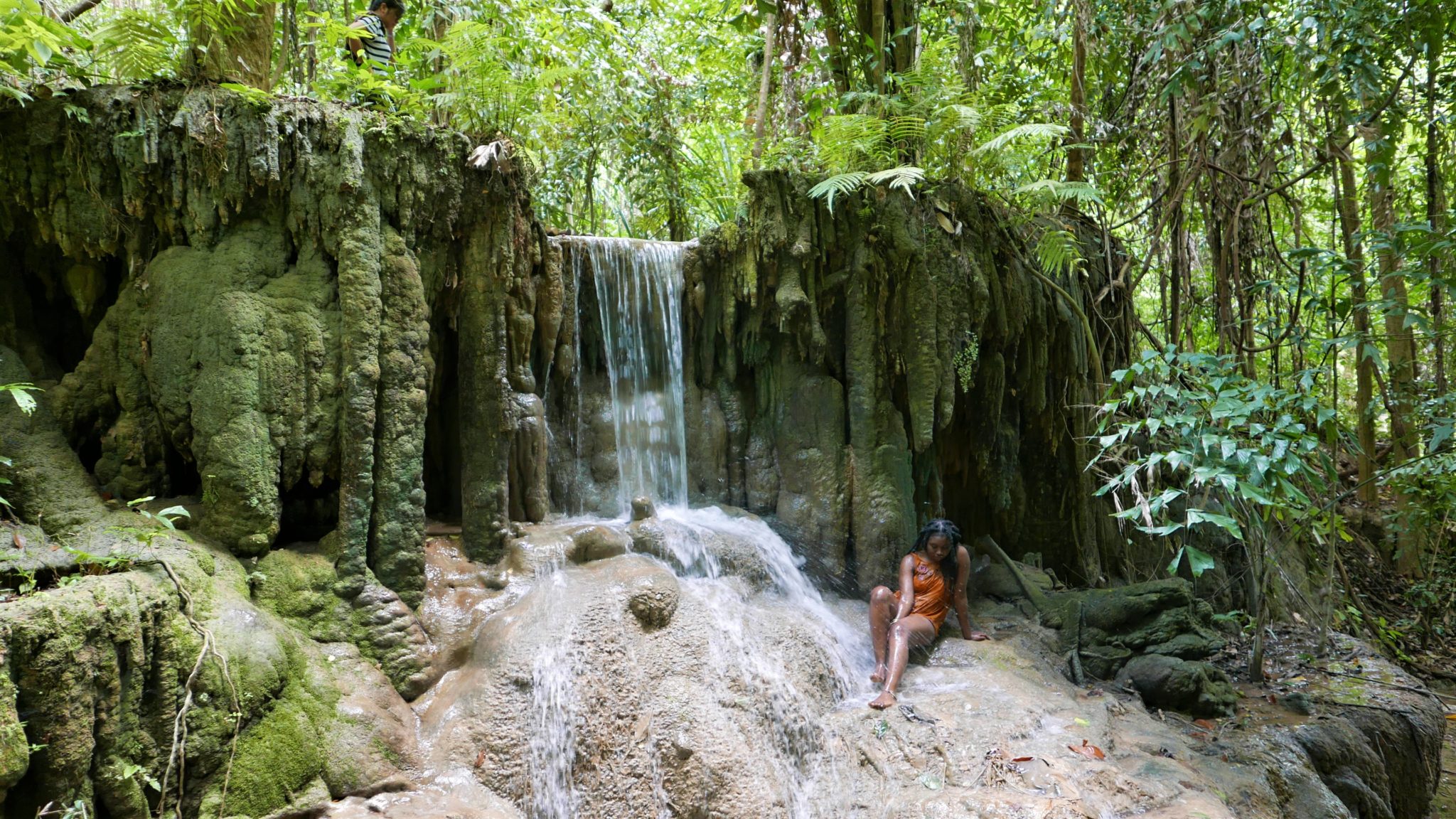 Teren Wodospadu jest dobrze zagospodarowany. Przy wejściu rozdawane są mapy z dokładnymi informacjami. Wodospad znajduje się około 2 kilometrów w głąb parku, które trzeba pokonać piechotą. My zamiast głównej ścieżki wybraliśmy dróżkę przez las bambusowy. Było dziko, ale spacer był przyjemny. Co najważniejsze, na dróżce umieszczone są tablice informacyjne w języku angielskim, które objaśniają sekretu dżungli.
