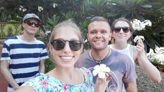 Polecam wybrać się do Kanchanaburi na co najmniej jedną noc. Gdy byłam tam z Emilem i moją siostrą, to właśnie taki mieliśmy plan. Jednak miasteczko totalnie nas wciągnęło i z jednej zrobiły się trzy! Tak to z nami bywa często. Slow travel. Gdzie spaliśmy? Okrąglutkie trzy dni spędziliśmy w Jolly Frog, którą poleciła nam Agnes z bloga Dziewczyna z Czewujewa. Ośrodek super. Prowadzony przez przemiłego Taja, który dobrze włada angielskim i jest po prostu przesympatyczny! Idziesz z rana na śniadanie, jest 7 rano, jesteś zaspana/y tak, że podpuchnięte oczy przysłaniają świat. Wchodzisz do knajpki, spotykasz właściciela, który patrzy na Ciebie, posyła najszerszy uśmiech na świecie i przynosi kawę. Wiadomo – dzień od razu lepszy!
