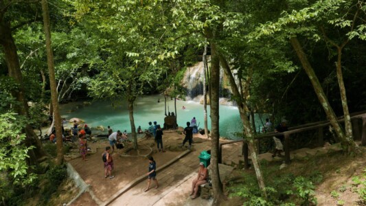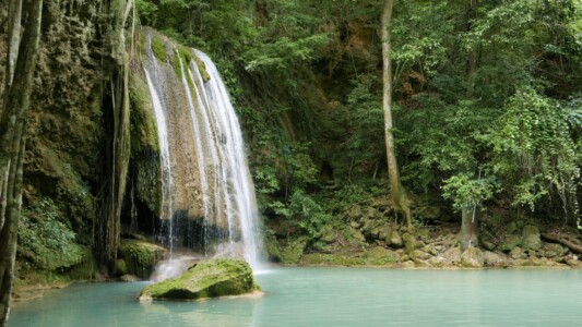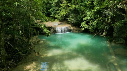Wodospad sam w sobie podobał mi się średnio. Ale to raczej przez tłumy rozkrzyczanych turystów i wszędobylskie dzieci. To zakłócało odbiór natury. Wodospad Kuang Si w Laosie wywarł na mnie większe wrażenie. Im wcześniej dotrzesz do Erawanu tym lepiej. Będziesz cieszyć się potęgą natury wręcz na wyłączność.