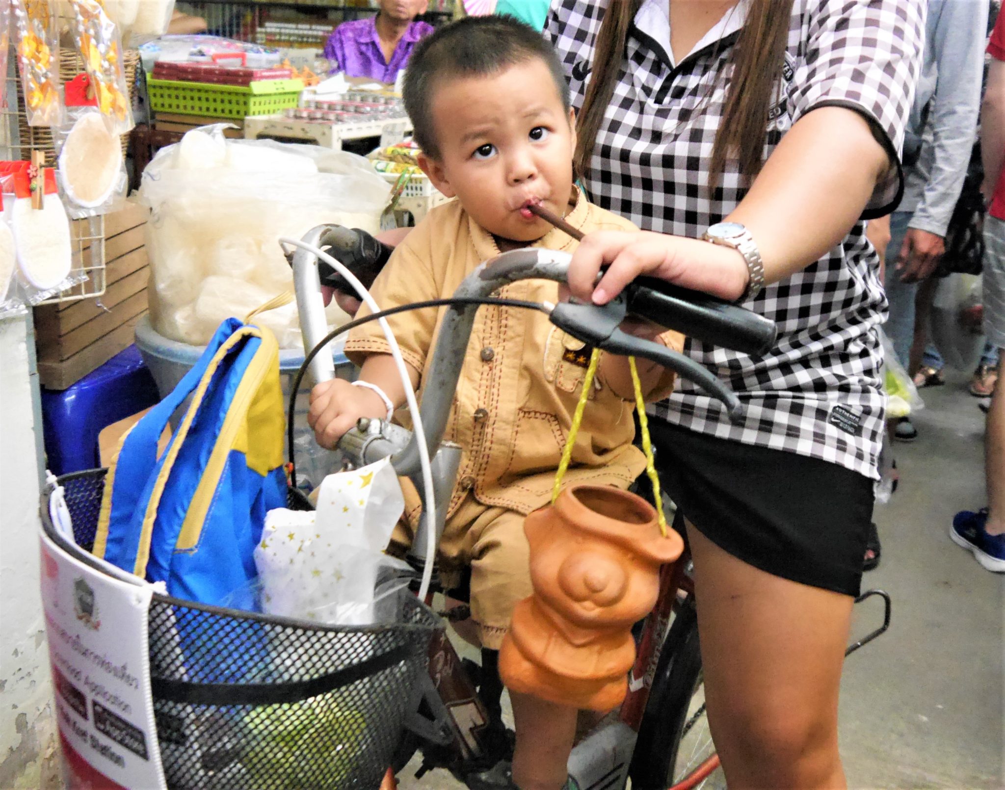 Ko Kret, to ewidentnie weekendowa miejscówka dla Tajów. Gdy tam byłam to nie uświadczyłam innych białych twarzy. Natomiast w sobotę czy niedzielę jest tam w pip Tajów, którzy chillują sobie na targowisku, leniwie jeżdżą na rowerkach wśród bujnej zieleni lub spożywają pyszny thaifood z widokiem na rzekę, popijając zimnego browarka.