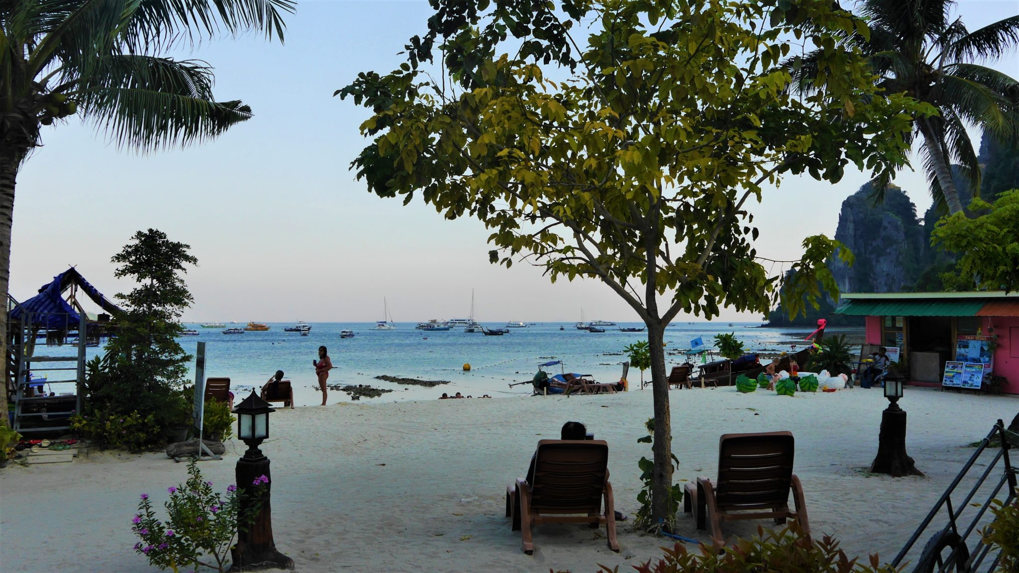 Ja spałam w Sand and Sea View Resort przy plaży Tonsai (od tej strony jest też port główny) . Przeszłam wyspę wzdłuż i wszerz i uważam zachodnią część tej plaży za jedno z fajniejszych miejsc. Przy smoczej skale, z miłym piaskiem. Widok psują setki łódek i motorówek – ja za nimi nie przepadam gdy myślę o „rajskiej plaży”, ale cóż. W porównaniu do reszty plaż na Phi Phi i tak było miło.
