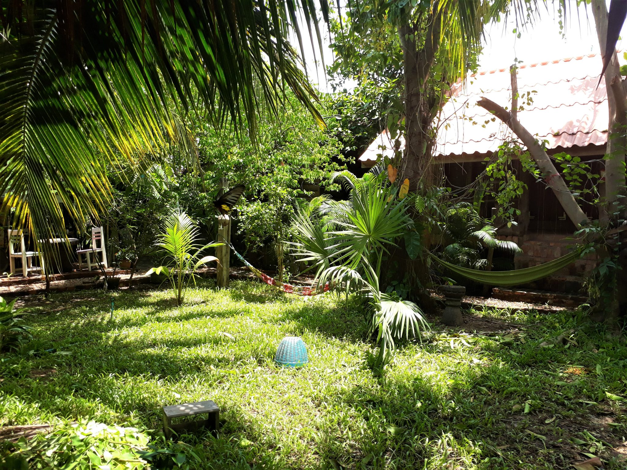 My z polecenia zawitaliśmy do Sala Thong Yon Guesthouse. I z czystym sercem polecamy tę miejscówkę! Prowadzona przez uroczą i wyluzowaną Laotankę, która przyjmuje gości jak domowników. Kilka bungalowsów pomiędzy tropikalnym, lekko zadbanym, a lekko dzikim buszem. Mnóstwo kwiatów, palm i nieznanych nam liści. W oddali staw. Prawdziwa chilloutowa dżungla w środku miasta! Motylki latają, hamaki się bujają, atmosfera sprzyja relaksowi. Bungalowsy są drewniane, proste i czyste. Z rana można zjeść leniwe śniadanie na tarasie domu właścicielki, wtulając się w wygodny fotel, z kotem na kolanach i filiżanką laotańskiej kawy w ręku. Piękna sprawa. Pokochaliśmy to miejsce 🙂 Cena za noc to 400 thb.