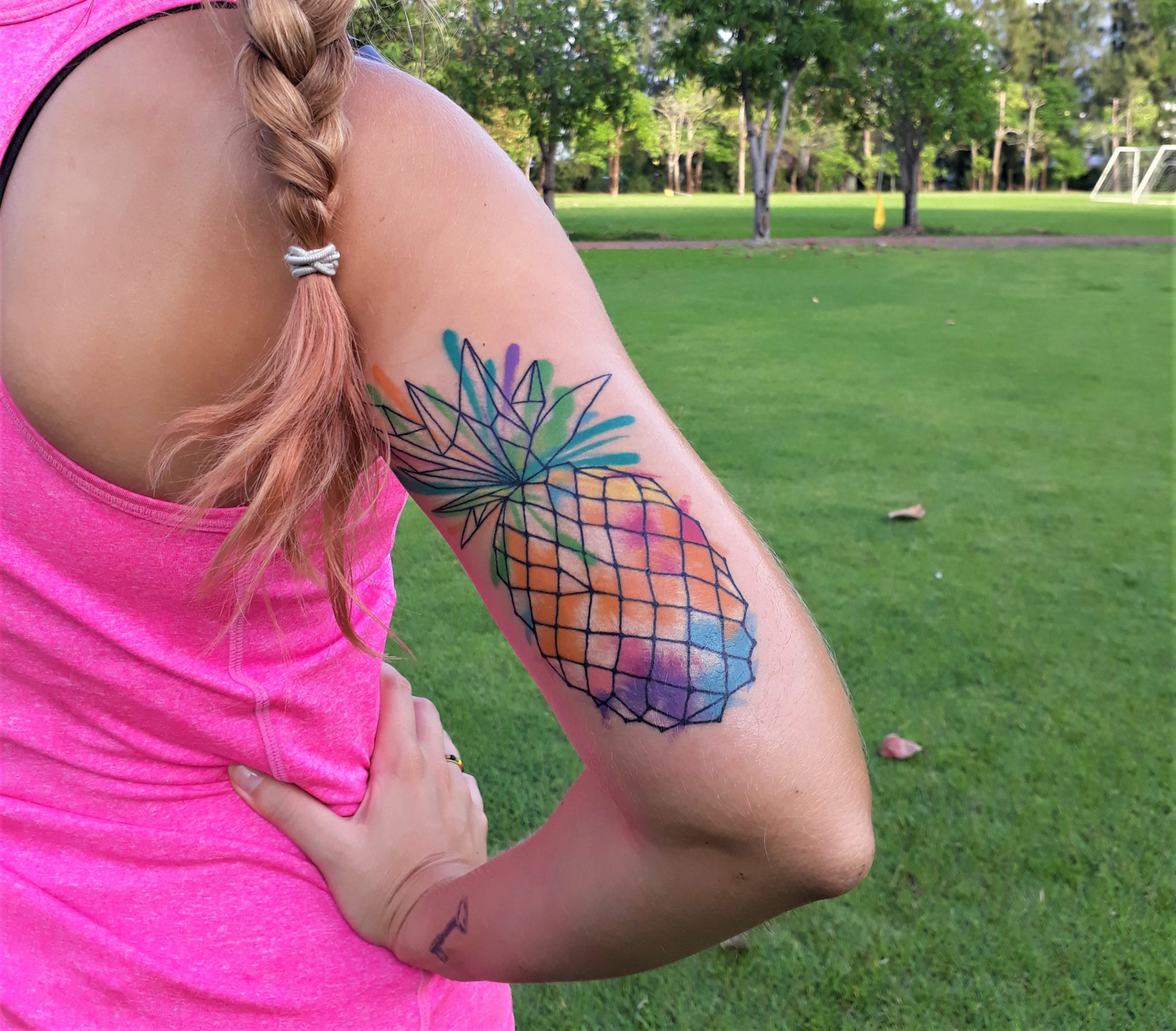 Ja dziarałamsię w All Day Tattoo Studio w Bangkoku. Wybrałam studio w którym obsługa jest w język angielskim, by mieć pewność, że się zrozumiemy. Ale tatuowali mnie Tajowie i byli zajebiści w tym co robią. Piękna robota.