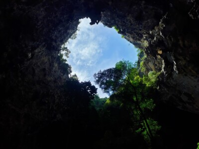 Jak powstała jaskinia Phraya Nakhon? Z tego co przeczytałam w języku angielskim na tabliczkach stojących w jaskini, dowiedziałam się, że skały tworzące tę górę są podatne na erozję spowodowaną wodą. Obie dziury w ziemi były latami wypłukiwane przez wodę. Pewnego dnia, z powodu niedostatecznej wytrzymałości, sufity zwaliły się, co zresztą można łatwo zauważyć. Na środku obu jaskiń usypane są wysokie pagórki. To na nich rośnie większość zielonego gaju.