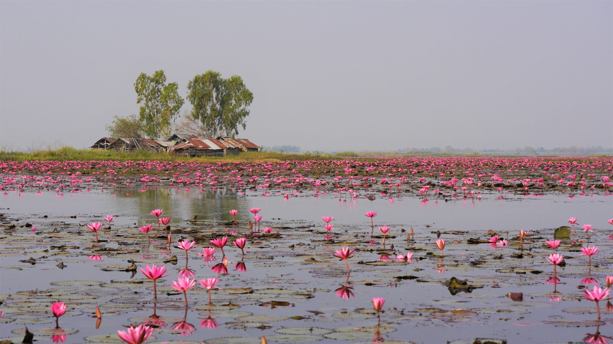Ja to piękne miejsce odkryłam przypadkiem. Przeglądałam anglojęzyczne strony o Tajlandii. Jak tylko zobaczyłam zdjęcia jeziora pełnego różowych kwiatów…. Wiedziałam, że tam pojadę. Chociaż szczerze mówiąc, byłam sceptycznie nastawiona. Byłam przekonana, że zdjęcia w internecie są podrasowane, podkolorowane i nie przedstawiają prawdziwego jeziora. Wiadomo jak to jest z fotami z atrakcji turystycznych. Naoglądasz się google grafika, potem jedziesz na miejsce i jest zonk. Myślałam, że tym razem będzie tak samo, ale jak to ja – nie uwierzę póki nie sprawdzę. Specjalnie kupiłam samolot z miesiąc wcześniej, w Udon Thani zaplanowałam tylko jedną noc. Tak naprawdę pojechałam na północ Tajlandii specjalnie nad to kwieciste jezioro….