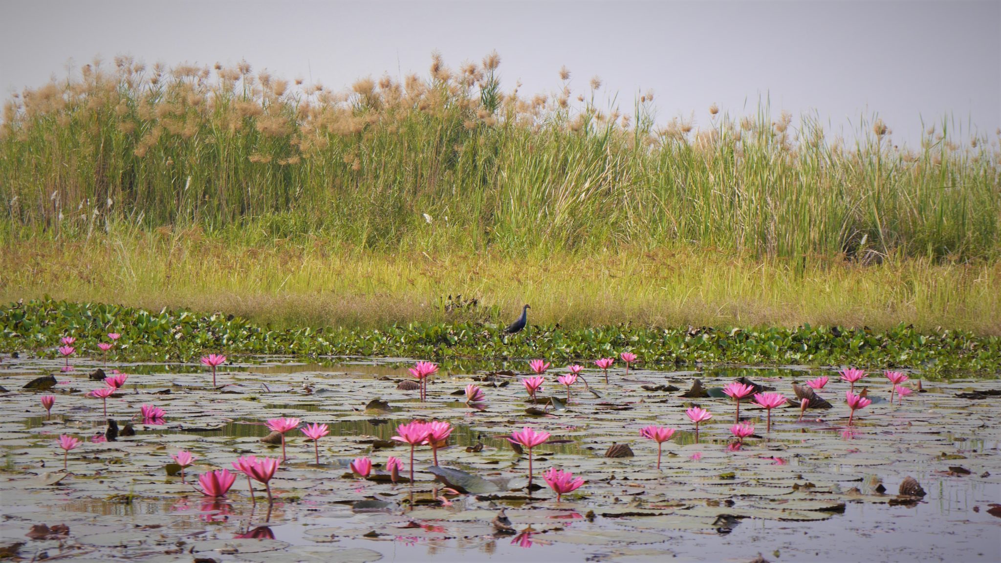 Miejsce jest magiczne. Lilie kwitną grudzień-luty, więc upewnij się, że pojedziesz nad jezioro w tym czasie. Nie jest to jeszcze zbyt znana atrakcja turystyczna, więc nie ma tłumów. Ja pojechałam zobaczyć Talay Bua Deng w lutym 2018. Wraz z moją łodzią na jeziorze było może z 7 innych. Ach, ważna sprawa, lepiej jechać jak najbardziej z rana, gdy lilie rozkwitają. Podobno cudnie przeżyć tam wschód słońca. Wiesz, co zaskoczyło mnie najbardziej? Ptaki. Jest ich tam mnóstwo. Duże małe, białe, czarne kolorowe. Szybują wysoko na niebie, niektóre brodzą na płyciźnie, a takie małe czarne polują na muszki, gdy przepływająca łódź wzburza wodę. Osobiście uważam, że obserwowanie tych dzikich ptaków, to najfajniejsza część opływówki. Wycieczka trwa około dwóch czy trzech godzin. W trakcie jest kilka postojów na zrobienie zdjęć.