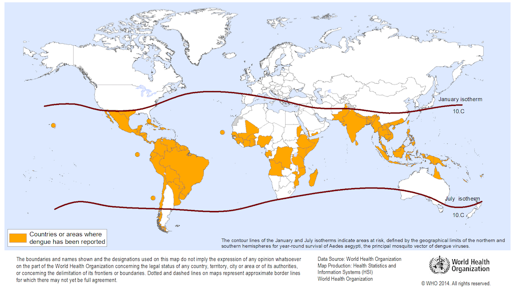 *Zdjęcie główne posta – źródło – WHO, World Health Organization – dengue risk areas 2013.